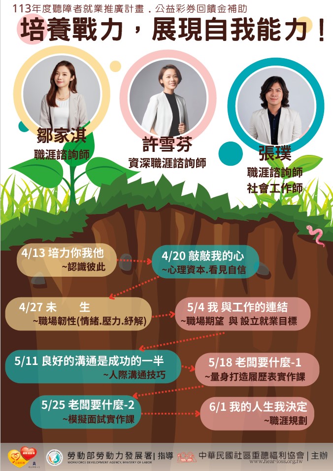 重聽福利承辦113年勞動部計劃:聽障者就業培力成長團體【培養戰力,展現自我能力!】